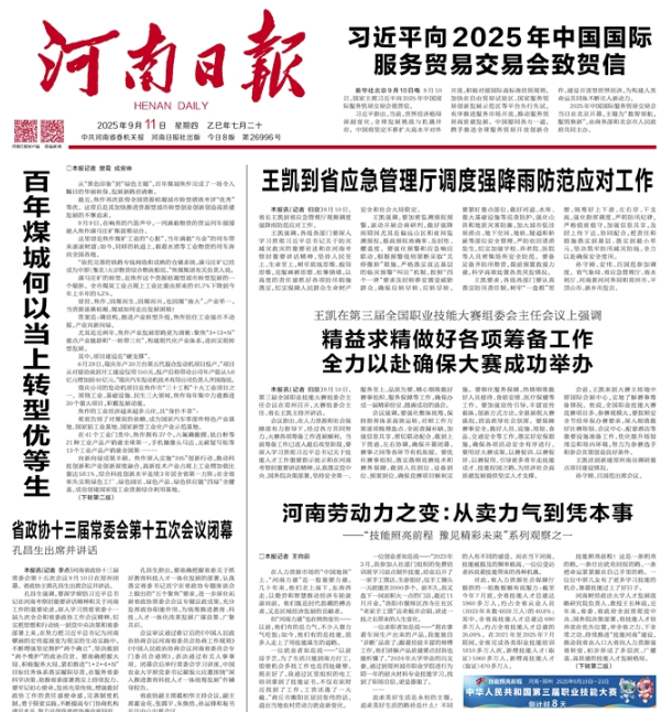 近日,我校英国上市公司365教授、河南人才发展战略研究院负责人王长林的观点登上2025年9月11日《河南日报》头版报道,并被河南省委人才办官方公众号“中原人才工作”转载。作为“技能照亮前程 豫见精彩未来”系列观察之一,文章聚焦河南劳动力从依靠体力外出务工到凭技能谋生的转变,展现职业培训带来的就业和创业新机遇。